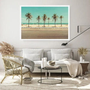 Póster - Una playa con palmeras y cielos azules. - 50x70cm - En la playa - Decoración de pared moderna para salón y dormitorio ARTTOR