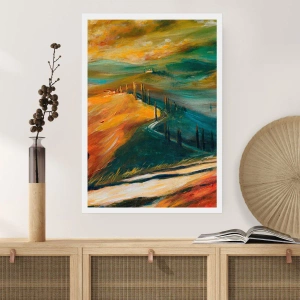 Póster - Paisaje toscano con campos, camino y cipreses. - 100x70cm - Paisaje toscano - Decoración de pared moderna para salón y dormitorio ARTTOR
