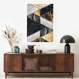 Póster - Triángulos geométricos en dorado, mármol y tonos oscuros. - 100x70cm - Collage de piedras - Decoración de pared moderna para salón y dormitorio ARTTOR