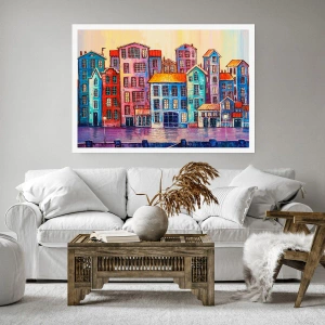 Póster - Casas de vecindad coloridas junto al agua en un estilo artístico - 100x70cm - Una ciudad como un cuento de hadas - Decoración de pared moderna para salón y dormitorio ARTTOR