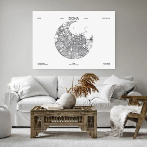 Póster - Un mapa minimalista de Doha en blanco y negro con detalles precisos. - 100x70cm - Anatomía de Doha - Decoración de pared moderna para salón y dormitorio ARTTOR