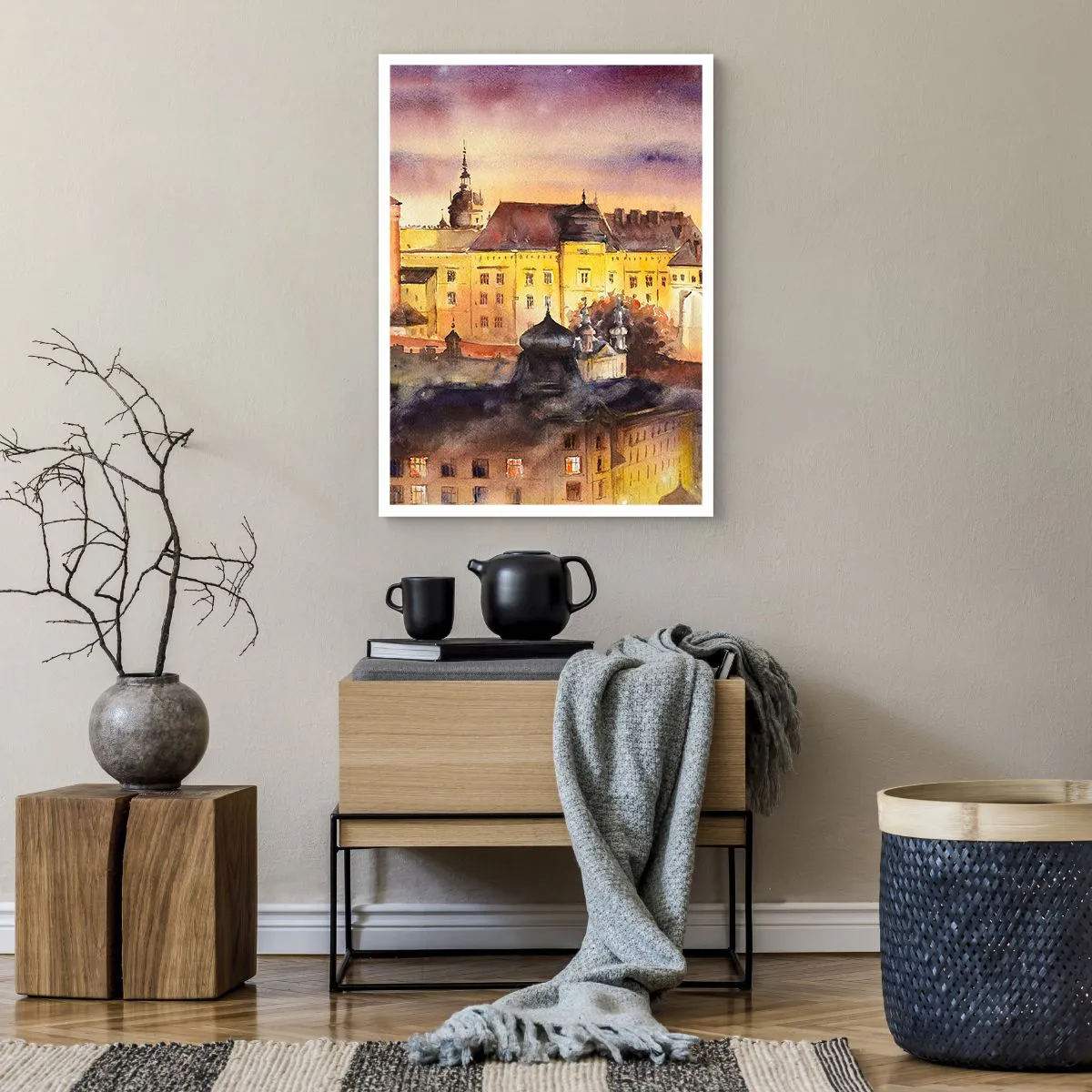 Póster - Una vista pintoresca de la ciudad a la luz del sol poniente. - 50x70cm - Una historia y un cuento - Decoración de pared moderna para salón y dormitorio ARTTOR