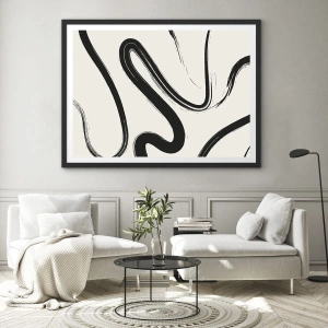 Póster en marco negro - Líneas negras abstractas sobre un fondo claro - 50x70cm - Fantasía en blanco y negro - Decoración de pared moderna para salón y dormitorio ARTTOR