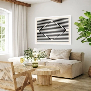 Póster - Líneas blancas y negras que crean un efecto de ilusión geométrica. - 100x70cm - Ilusión geométrica - Decoración de pared moderna para salón y dormitorio ARTTOR