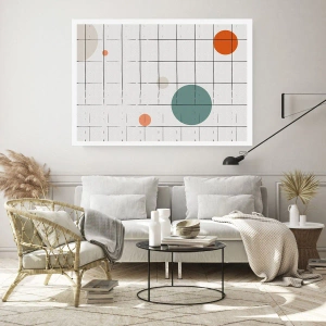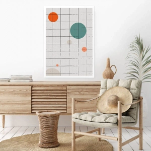 Póster - Composición abstracta de una cuadrícula y círculos de colores. - 50x70cm - Atrapados. ¿Nosotros o ellos? - Decoración de pared moderna para salón y dormitorio ARTTOR