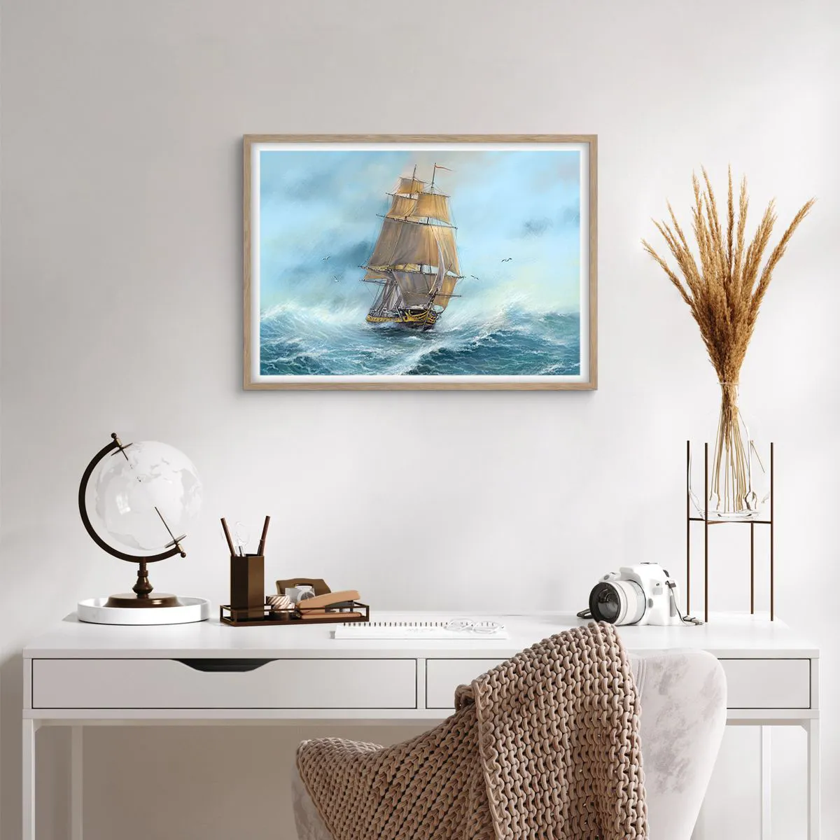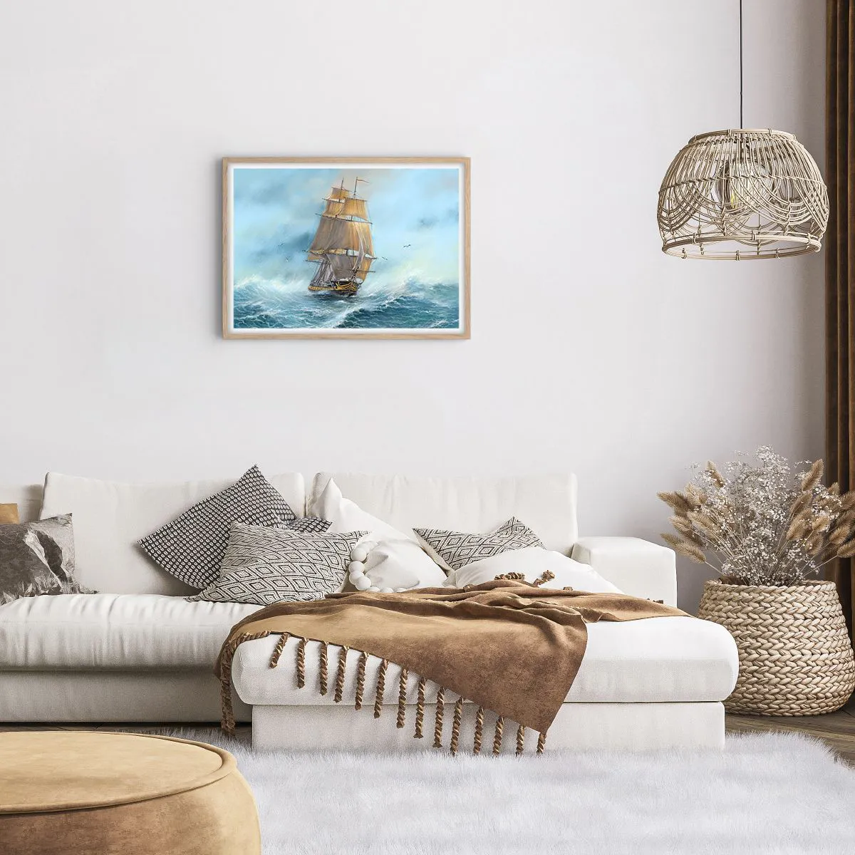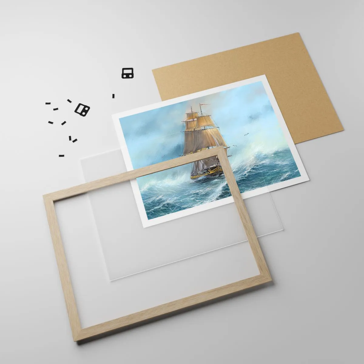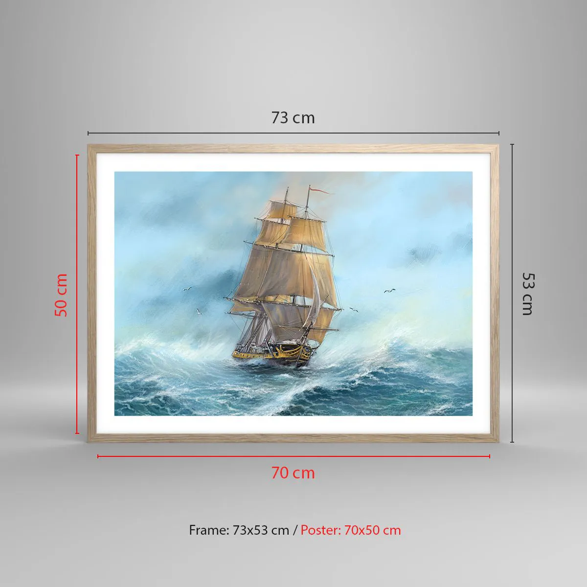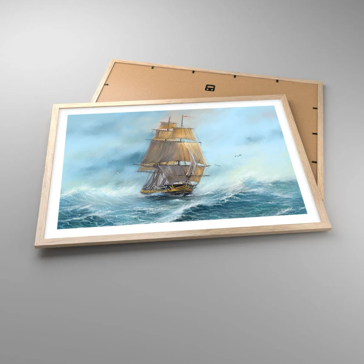 Póster en marco roble claro - Surcando las olas - 70x50 cm