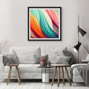 Póster en marco negro - Una composición abstracta de líneas onduladas en colores intensos. - 50x70cm - Tejido arco iris - Decoración de pared moderna para salón y dormitorio ARTTOR