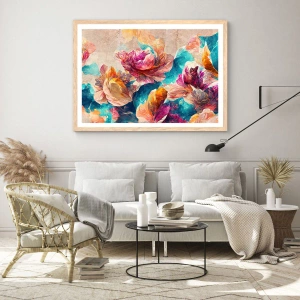 Póster en marco roble claro - El colorido esplendor de un ramo - 50x50 cm