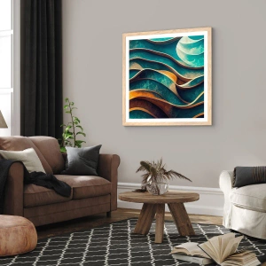Póster en marco roble claro - Meandros de azul - 30x30 cm
