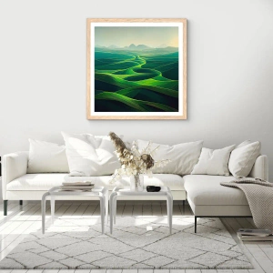 Póster en marco roble claro - Valles en tonos verdes - 50x70 cm
