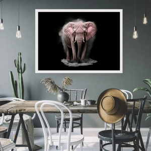 Póster - Un elefante rosa en un espacio negro y dinámico. - 50x70cm - El rey rosado de oriente - Decoración de pared moderna para salón y dormitorio ARTTOR