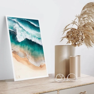 Póster - Olas del mar rompiendo en la playa - 50x70cm - Un encuentro eterno - Decoración de pared moderna para salón y dormitorio ARTTOR