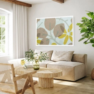 Póster - Hojas abstractas en tonos beige y amarillo. - 100x70cm - Composición a pleno sol - Decoración de pared moderna para salón y dormitorio ARTTOR
