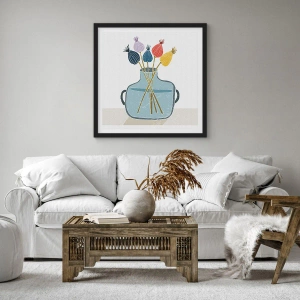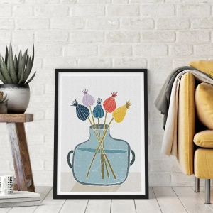 Póster en marco negro - Flores secas de colores en un jarrón sobre un fondo blanco. - 100x70cm - Como una semilla de amapola - Decoración de pared moderna para salón y dormitorio ARTTOR