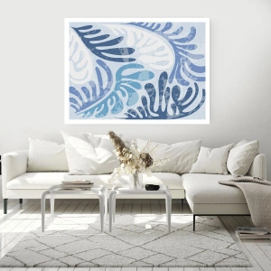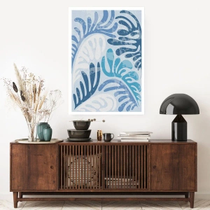 Póster - Formas abstractas en tonos azules sobre un fondo blanco. - 100x70cm - Helechos azules - Decoración de pared moderna para salón y dormitorio ARTTOR