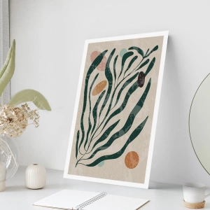 Póster - Composición abstracta de plantas en verde y beige. - 50x70cm - Entre verdes - Decoración de pared moderna para salón y dormitorio ARTTOR