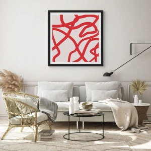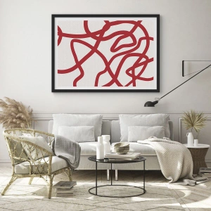 Póster en marco negro - Composición abstracta de líneas rojas dinámicas sobre un fondo claro. - 50x70cm - Rojo sobre blanco - Decoración de pared moderna para salón y dormitorio ARTTOR
