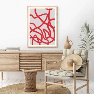 Póster en marco roble claro - Rojo sobre blanco - 50x50 cm