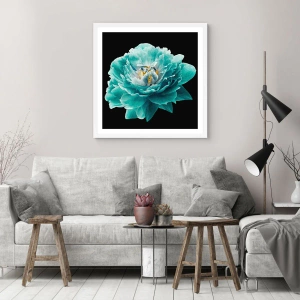 Póster en marco blanco - Pétalos azules y dorados - 100x70 cm