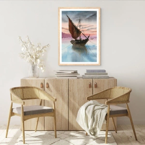 Póster en marco roble claro - Atardecer en el puerto - 50x50 cm