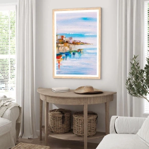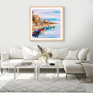 Póster en marco roble claro - Puerto urbano multicolor - 60x60 cm