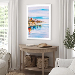 Póster en marco blanco - Puerto urbano multicolor - 50x50 cm