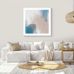 Póster en marco blanco - Abstracción rosa tras un velo azul - 70x50 cm