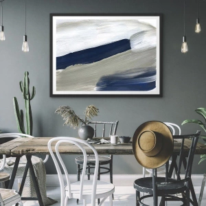 Póster - Encuentro con el Blanco - Pinceladas abstractas en tonos azul marino