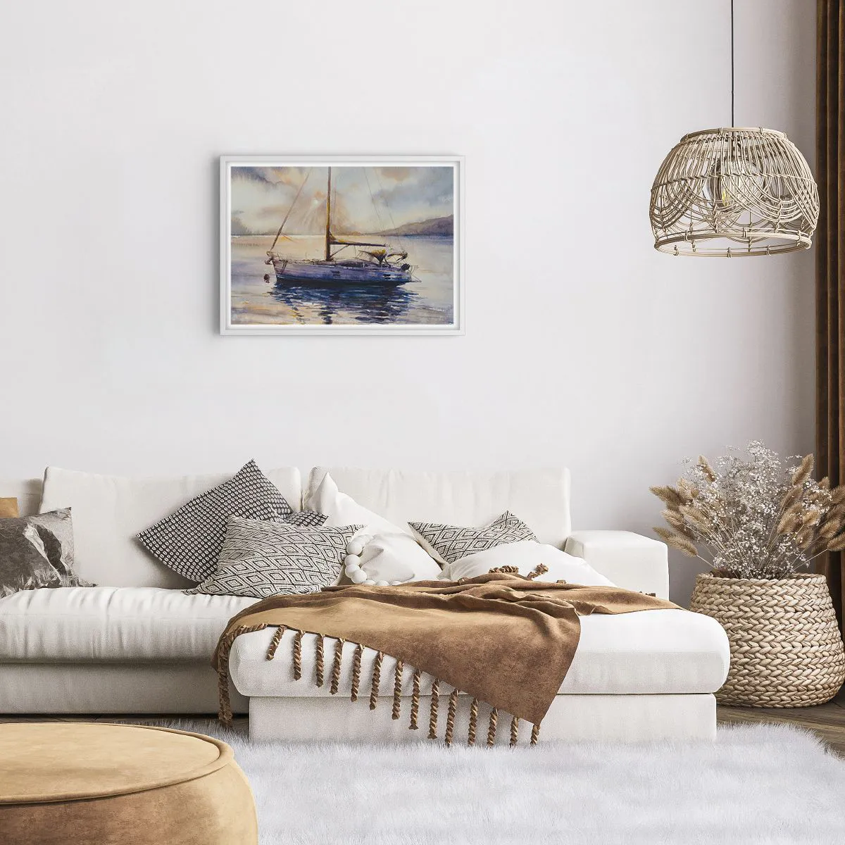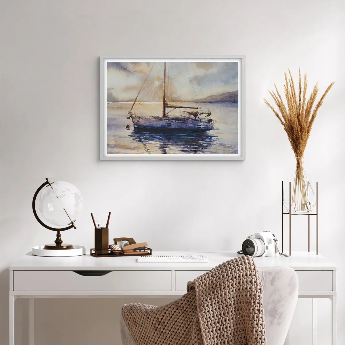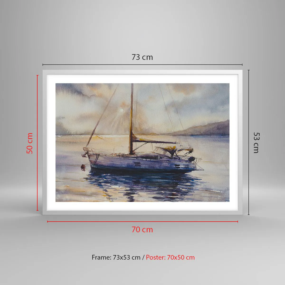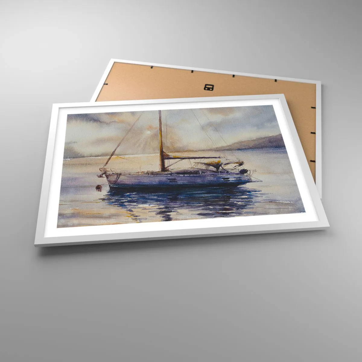 Póster en marco blanco - Atardecer en la bahía - 70x50 cm