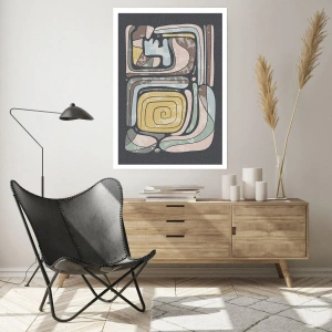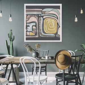 Póster - Patrones precolombinos en colores pastel sobre un fondo oscuro - 100x70cm - Abstracción con espíritu precolombino - Decoración de pared moderna para salón y dormitorio ARTTOR