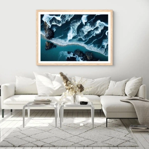 Póster en marco roble claro - Rodeadas por las olas - 60x60 cm