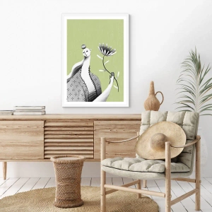 Póster en marco blanco - Retrato modernista - sosteniendo una flor - 70x100 cm