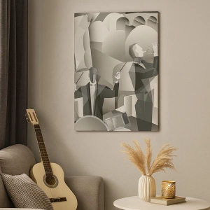 Cuadro sobre lienzo - Impresión de Imagen - Escena abstracta con músicos de jazz en tonos de gris. - 70x50cm - En el espacio de los sonidos - Decoración de pared moderna para salón y dormitorio ARTTOR