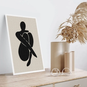 Póster - Figura abstracta en pose con los brazos alrededor del cuerpo, ilustración en blanco y negro - 50x70cm - En mi propio abrazo - Decoración de pared moderna para salón y dormitorio ARTTOR
