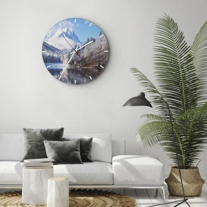 Reloj de pared - Reloj de vidrio - Paisaje invernal de montaña con árboles cubiertos de nieve y un lago. - 30x30cm - Guardia de nieve - Decoración de pared moderna para salón y dormitorio ARTTOR