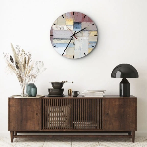 Reloj de pared - Reloj de vidrio - Composición geométrica en colores pastel - 30x30cm - La tranquilidad de la geometría - Decoración de pared moderna para salón y dormitorio ARTTOR