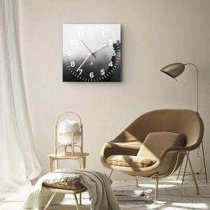 El reloj está vidrio con un espesor de 4mm. La tecnología de fabricación cumple con la clase de seguridad 2B2 según la normativa PN-EN 12600:2004 que garantiza la resistencia al impacto. El reloj de cristal está listo para ser instalado en la pared, tiene un colgador de metal fijado en la parte posterior del reloj y un espaciador de espuma para regular la distancia entre el reloj y la pared. El reloj tiene un mecanismo de flujo silencioso que funciona con una pila de 1,5 V - AA (pila no incluida).