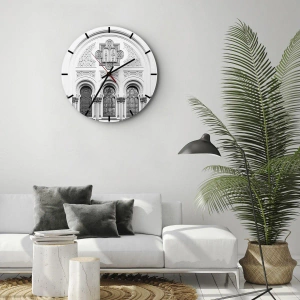 El reloj está vidrio con un espesor de 4mm. La tecnología de fabricación cumple con la clase de seguridad 2B2 según la normativa PN-EN 12600:2004 que garantiza la resistencia al impacto. El reloj de cristal está listo para ser instalado en la pared, tiene un colgador de metal fijado en la parte posterior del reloj y un espaciador de espuma para regular la distancia entre el reloj y la pared. El reloj tiene un mecanismo de flujo silencioso que funciona con una pila de 1,5 V - AA (pila no incluida).