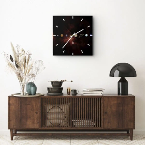Reloj de pared - Reloj de vidrio - El sistema solar con planetas sobre el fondo del espacio. - 30x30cm - Nuestro barrio - Decoración de pared moderna para salón y dormitorio ARTTOR