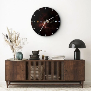 El reloj está vidrio con un espesor de 4mm. La tecnología de fabricación cumple con la clase de seguridad 2B2 según la normativa PN-EN 12600:2004 que garantiza la resistencia al impacto. El reloj de cristal está listo para ser instalado en la pared, tiene un colgador de metal fijado en la parte posterior del reloj y un espaciador de espuma para regular la distancia entre el reloj y la pared. El reloj tiene un mecanismo de flujo silencioso que funciona con una pila de 1,5 V - AA (pila no incluida).