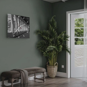 Reloj de pared - Reloj de vidrio - Columnata de estilo clásico en blanco y negro - 30x30cm - Galería soleada - Decoración de pared moderna para salón y dormitorio ARTTOR