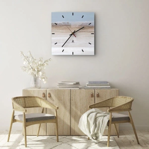 Reloj de pared - Reloj de vidrio - Paisaje pastel con rayas horizontales de color azul y beige. - 30x30cm - Paisaje ambiguo - Decoración de pared moderna para salón, cocina y dormitorio ARTTOR