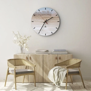 El reloj de pared no solo tiene una función práctica, sino también estética. Su forma se asemeja a las pinturas contemporáneas que se encuentran en las galerías de arte contemporáneo. Esto lo convierte en la opción perfecta tanto para el salón, el recibidor como para el dormitorio. Decorado en colores neutros y con un diseño minimalista, no domina el espacio, sino que lo realza. El producto fue fabricado por ARTTOR, lo que garantiza su alta calidad y precisión. El modelo tiene un formato redondo de 30 x 30 cm, y el gráfico se aplicó a la superficie del vidrio. Esta construcción garantiza durabilidad y una apariencia elegante que se adaptará a la perfección a diversos entornos. El reloj de pared "Paisaje Ambiguo" combina diseño decorativo con funcionalidad. Su forma sencilla, colores pastel y diseño minimalista lo convierten en la opción ideal para quienes valoran los interiores tranquilos y sobrios. Su presencia en la habitación crea una atmósfera acogedora y armoniosa, a la vez que actúa como un elemento de diseño distintivo.