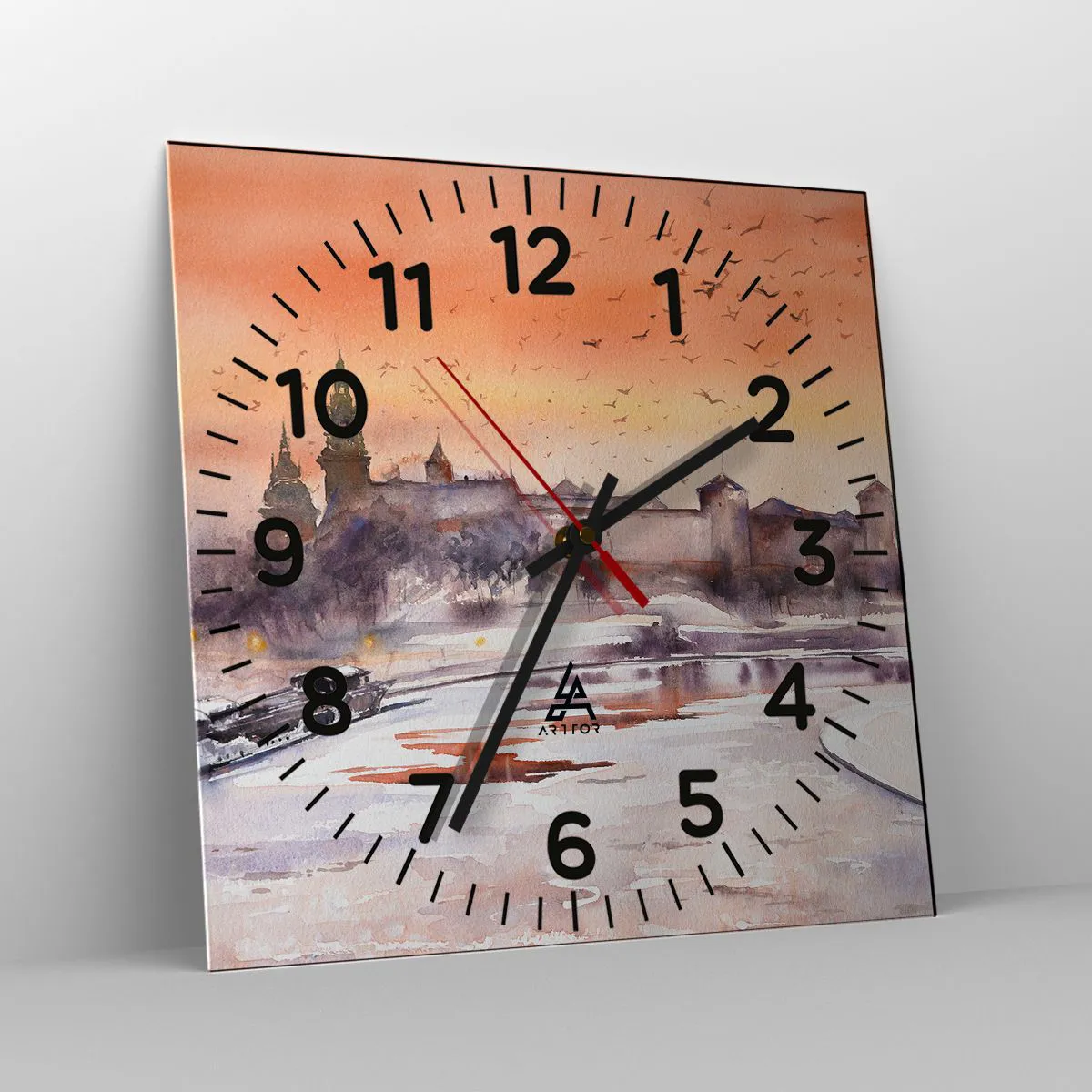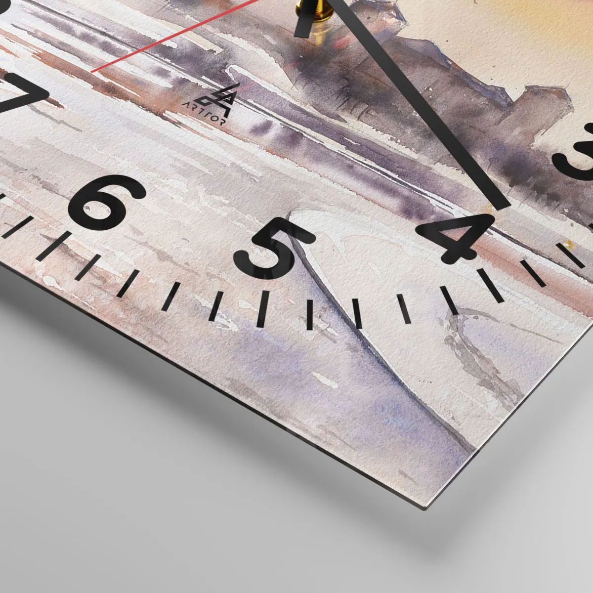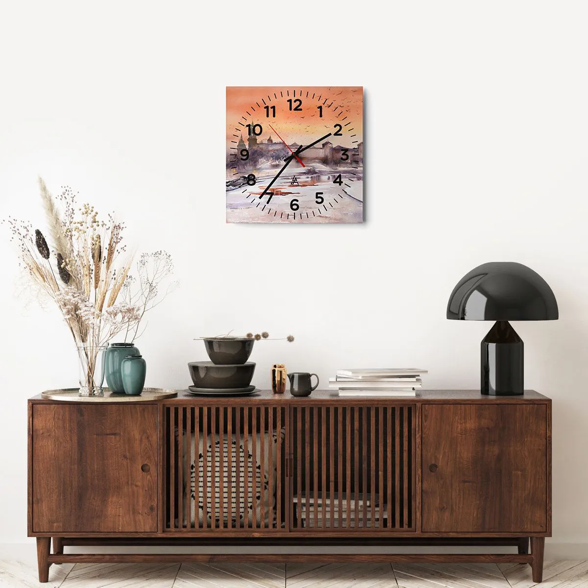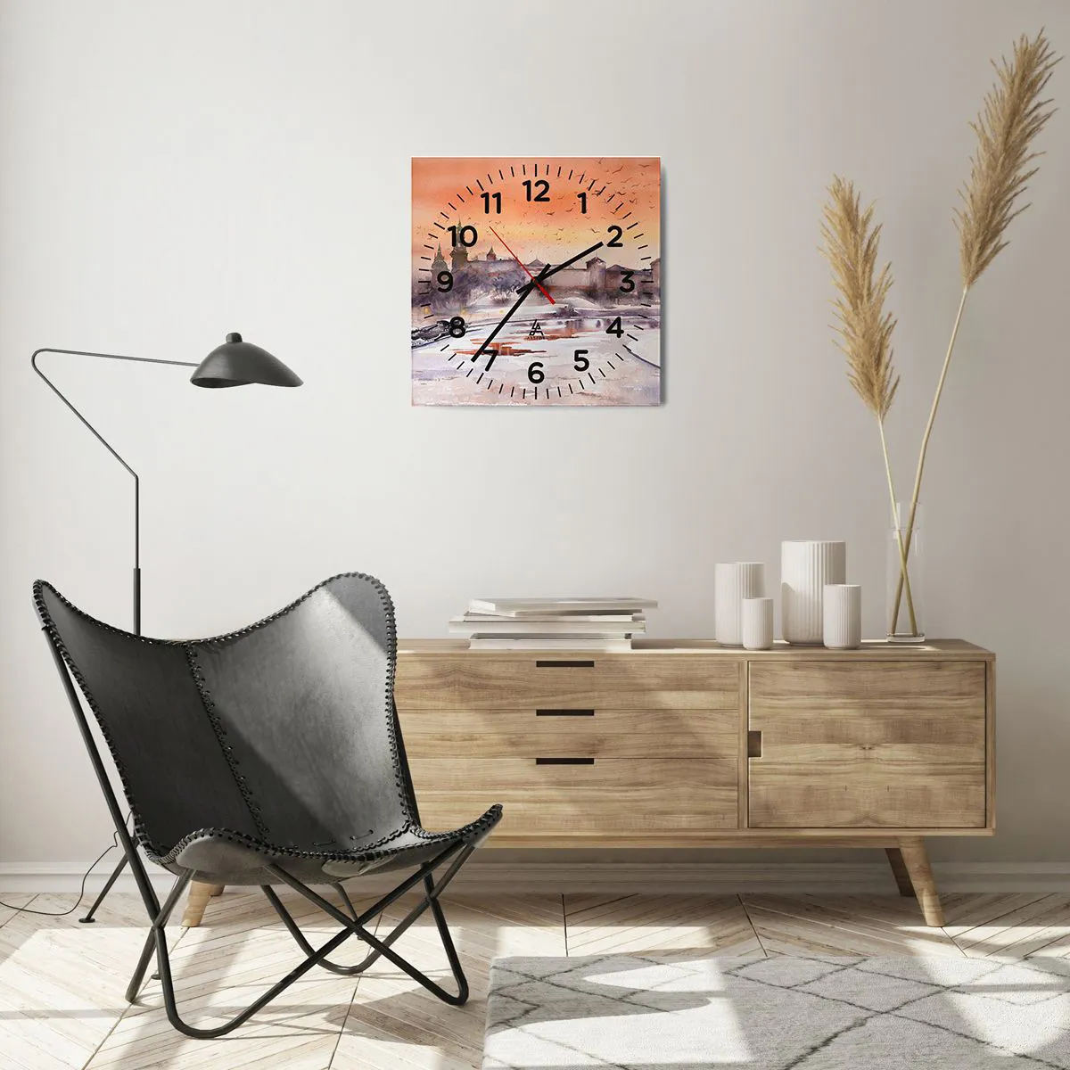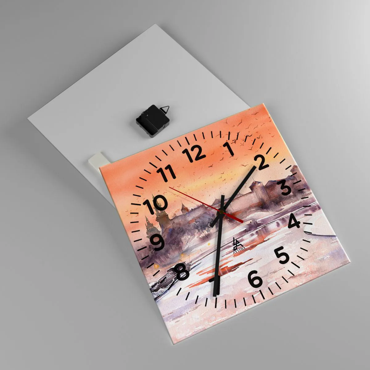 Reloj de pared - Reloj de vidrio - Atardecer real - 40x40 cm