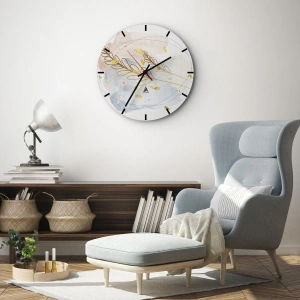 El reloj está vidrio con un espesor de 4mm. La tecnología de fabricación cumple con la clase de seguridad 2B2 según la normativa PN-EN 12600:2004 que garantiza la resistencia al impacto. El reloj de cristal está listo para ser instalado en la pared, tiene un colgador de metal fijado en la parte posterior del reloj y un espaciador de espuma para regular la distancia entre el reloj y la pared. El reloj tiene un mecanismo de flujo silencioso que funciona con una pila de 1,5 V - AA (pila no incluida).