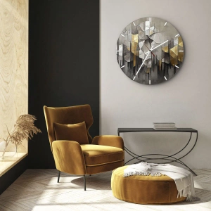 El reloj está vidrio con un espesor de 4mm. La tecnología de fabricación cumple con la clase de seguridad 2B2 según la normativa PN-EN 12600:2004 que garantiza la resistencia al impacto. El reloj de cristal está listo para ser instalado en la pared, tiene un colgador de metal fijado en la parte posterior del reloj y un espaciador de espuma para regular la distancia entre el reloj y la pared. El reloj tiene un mecanismo de flujo silencioso que funciona con una pila de 1,5 V - AA (pila no incluida).
