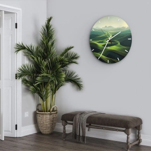 Reloj de pared - Reloj de vidrio - Colinas verdes con senderos ondulados - 30x30cm - Valles en tonos verdes - Decoración de pared moderna para salón y dormitorio ARTTOR