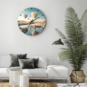 Reloj de pared - Reloj de vidrio - Globos en forma de corazón flotando sobre el paisaje. - 30x30cm - El amor te hace volar - Decoración de pared moderna para salón y dormitorio ARTTOR