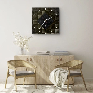Reloj de pared - Reloj de vidrio - Líneas doradas que forman un rombo sobre un fondo negro. - 30x30cm - Geometría al estilo glamour - Decoración de pared moderna para salón, cocina y dormitorio ARTTOR
