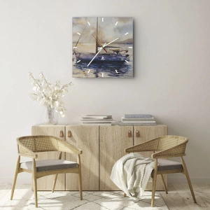 Reloj de pared - Reloj de vidrio - Atardecer en la bahía - 40x40 cm